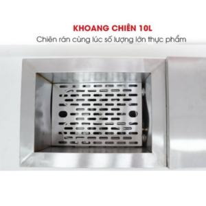 Bên cạnh đó, khoang chiên còn được trang bị thêm giá đựng dạng lưới giúp thực phẩm khi chiên không bị dính bẩn, tránh tình trạng vụn cặn thức ăn bám vào thanh nhiệt hay ống kim loại bên dưới khoang.