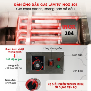 Hệ thống ống dẫn gas được làm từ inox 304 siêu bền, chống gỉ sét tốt, gia nhiệt nhanh giúp làm nóng dầu trong thời gian ngắn. Ống dẫn gas nằm trong tầng dầu, chỉ làm nóng dầu không sôi nước giúp loại bỏ tình trạng nổ dầu.