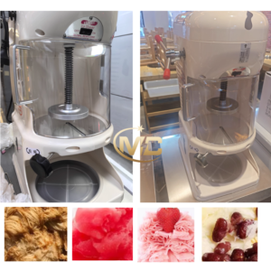 - Tạo đá mịn như tuyết, nâng cao chất lượng món ăn: Máy bào đá tuyết giúp bào đá thành dạng tuyết mịn, xốp, không dăm đá cứng