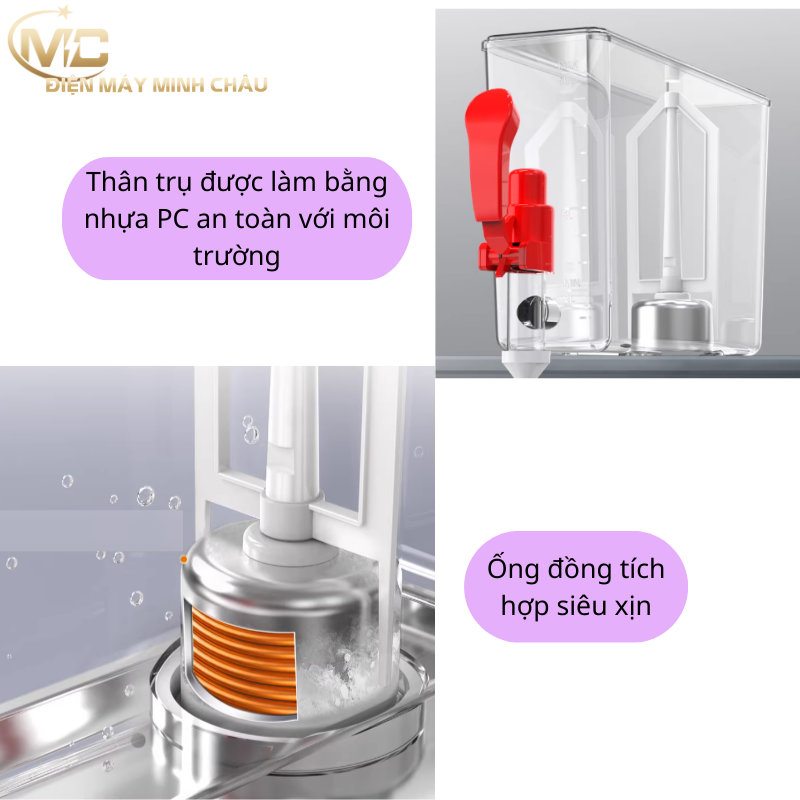 - Thân máy & hệ thống thoát nước: Cách nhiệt tốt, vệ sinh thuận tiện.