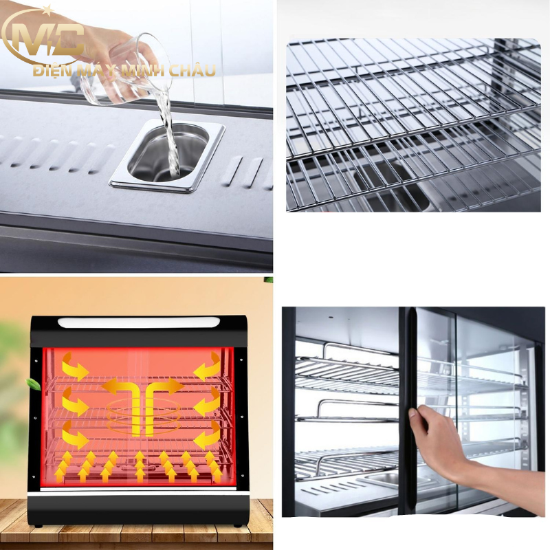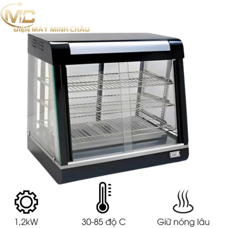 TỦ TRƯNG BÀY GIỮ NÓNG THỰC PHẨM KÍNH VUÔNG KÍCH THƯỚC 90